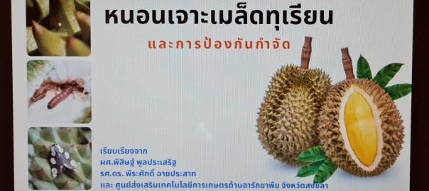 ศทอ.พิษณุโลก เป็นวิทยากร บรรยายให้ความรู้ หลักสูตร “ส่งเสริมการกำจัดหนอนเจาะเมล็ดทุเรียนด้วยวิธีผสมผสาน” ให้แก่เกษตรกรผู้ปลูกทุเรียน รุ่นที่ 6