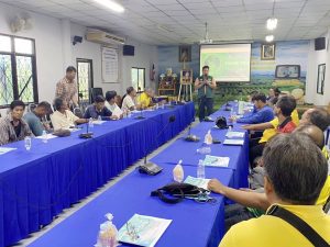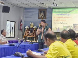 วันที่ 22 พฤษภาคม 2568 นายประเสริฐ อินเกตุสมบูรณ์ ผู้อำนวยการศูนย์ส่งเสริมเทคโนโลยีการเกษตรด้านอารักขาพืช จังหวัดพิษณุโลก มอบหมายให้ นายโยธี เปล่งขำ นักวิชาการส่งเสริมการเกษตรชำนาญการ เป็นวิทยากรอบรมถ่ายทอดเทคโนโลยีให้แก่เกษตรกรด้านการพัฒนาคุณภาพมาตรฐานการผลิต ในหัวข้อเรื่อง การควบคุมศัตรูพืช การใช้สารเคมีที่ถูกต้องตามมาตรฐานการส่งออก มีความปลอกภัยต่อสิ่งแวดล้อมและการเพิ่มความอุดมสมบูรณ์ของดินอย่างเหมาะสม เพื่อการผลิตสินค้าคุณภาพพรีเมี่ยมเกรด และพัฒนาเกษตรกรให้มีความรูเกี่ยวกับการจัดการพืชที่ถูกต้องและเหมาะสมกับสถานการณ์ สภาพพื้นที่ และบริบทของเกษตรกรด้วยวิธีการที่เป็นมิตรต่อสิ่งแวดล้อม ภายใต้การเปลี่ยนแปลงของสภาพภูมิอากาศและสิ่งแวดล้อม มีเกษตรกรเข้าร่วม จำนวน 35 ราย ณ ห้องประชุมองค์การบริการส่วนตำบลวังทับไทร อำเภอสากเหล็ก จังหวัดพิจิตร