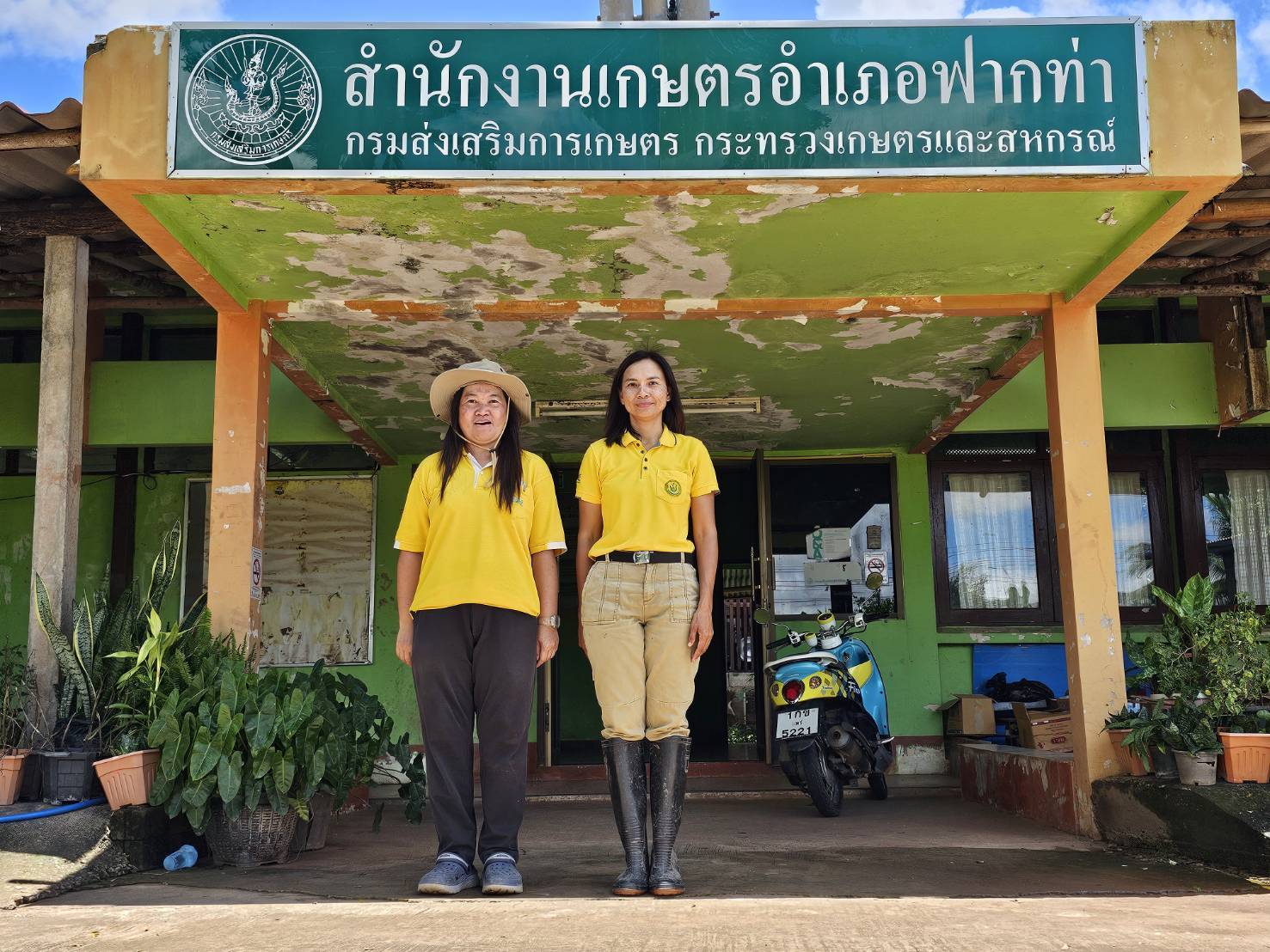 วันที่ 5 สิงหาคม 2567 นายประเสริฐ อินเกตุสมบูรณ์ ผู้อำนวยการศูนย์ส่งเสริมเทคโนโลยีการเกษตรด้านอารักขาพืช จังหวัดพิษณุโลก มอบหมายให้ นางสาวประภาทิพย์ พันธชาติ นักวิชาการส่งเสริมการเกษตรชำนาญการ สำรวจและติดตามสถานการณ์การระบาดศัตรูพืชในพื้นที่ อำเภอฟากท่า จังหวัดอุตรดิตถ์ พบการระบาดของโรคไหม้ข้าวรุนแรง ในพื้นที่ ตำบลฟากท่า และ ตำบลบ้านเสี้ยว โดยพบอาการใบไหม้เป็นแผลรูปกระสวย ตรงกลางแผลเป็นสีเทา ขอบแผลเป็นสีน้ำตาล เมื่อแผลขยายลุกลามจะทำให้ใบข้าวแห้งและต้นข้าวฟุบตายในที่สุด ศูนย์ฯได้แนะนำวิธีการป้องกันกำจัด โดยการฉีดพ่นสารเคมี ได้แก่ โพรพิโคนาโซล ไตรไซคลาโซล หรือ ไอโซโปรไธโอเลน หรือ คาซูก้ามัยซิน โดยฉีดพ่น 3 ครั้ง ห่างกันทุก 7 วัน จึงจะสามารถควบคุมโรคได้ และควรสำรวจติดตามสถานการณ์การระบาดอย่างต่อเนื่อง